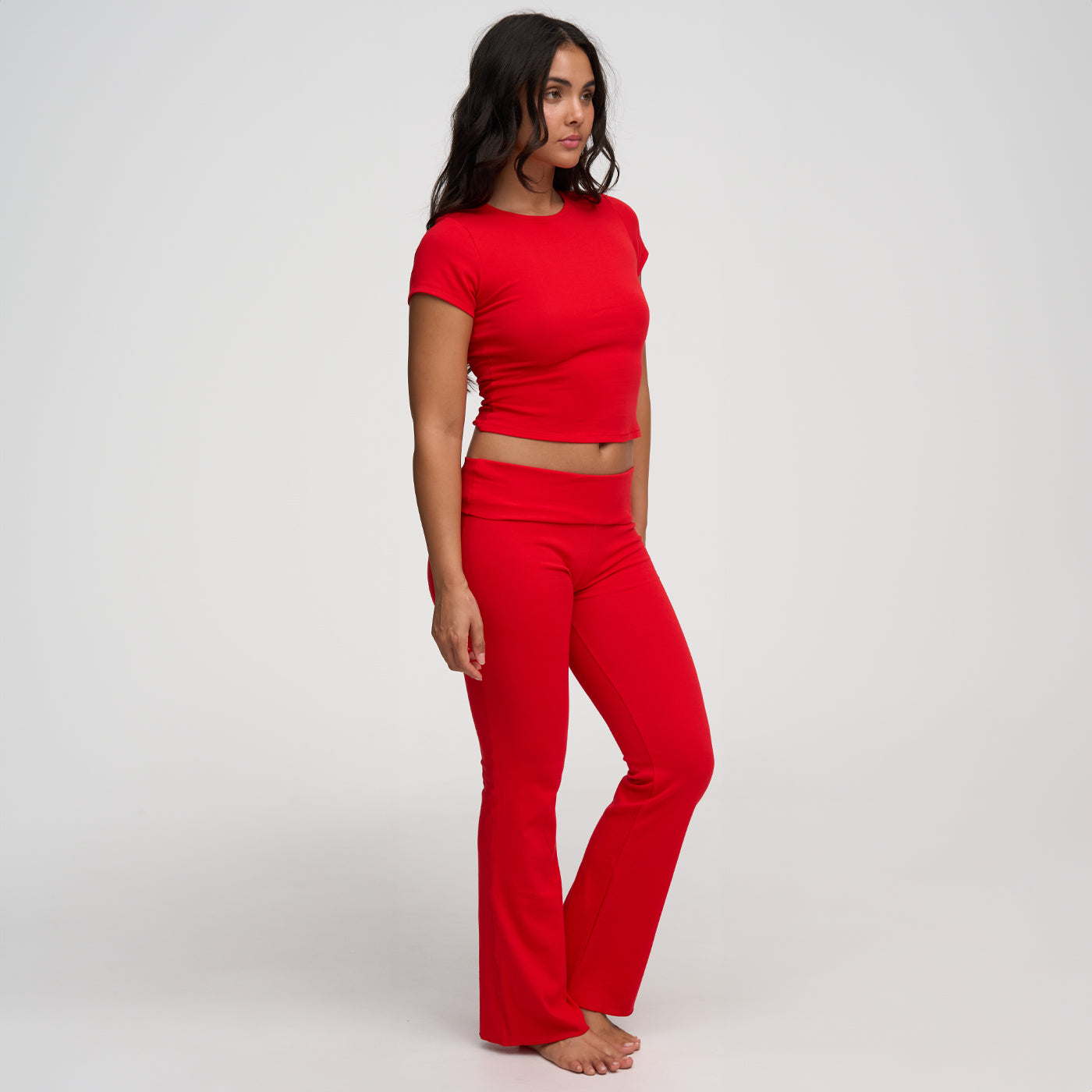Ob sportlich mit Sneaker und Croptop, lässig mit Hoodie oder schick mit Blazer – unsere Bootcut Leggings passen sich deinem Alltag an. Der cleane Look, das ausgestellte Bein und die hochwertige Baumwolle machen sie zum perfekten Styling-Baustein – von morgens bis abends, drinnen wie draußen. Du entscheidest, wie du sie kombinierst – sie macht alles mit.